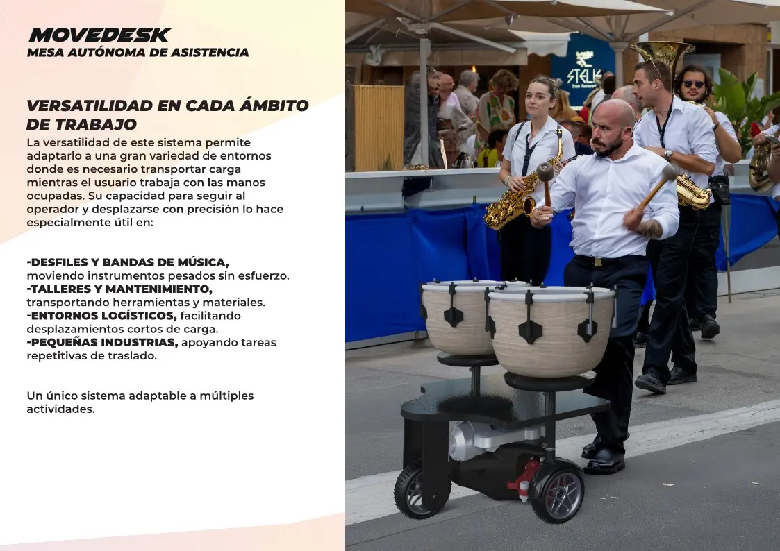 Es una invención innovadora de transporte de carga que incorpora un sistema de avance autónomo. Está diseñado para seguir y copiar automáticamente los movimientos del usuario mediante sensores y un motor eléctrico. Su objetivo es desplazar cargas pesadas sin la necesidad de ser empujado o guiado manualmente, liberando al operario para otras tareas.