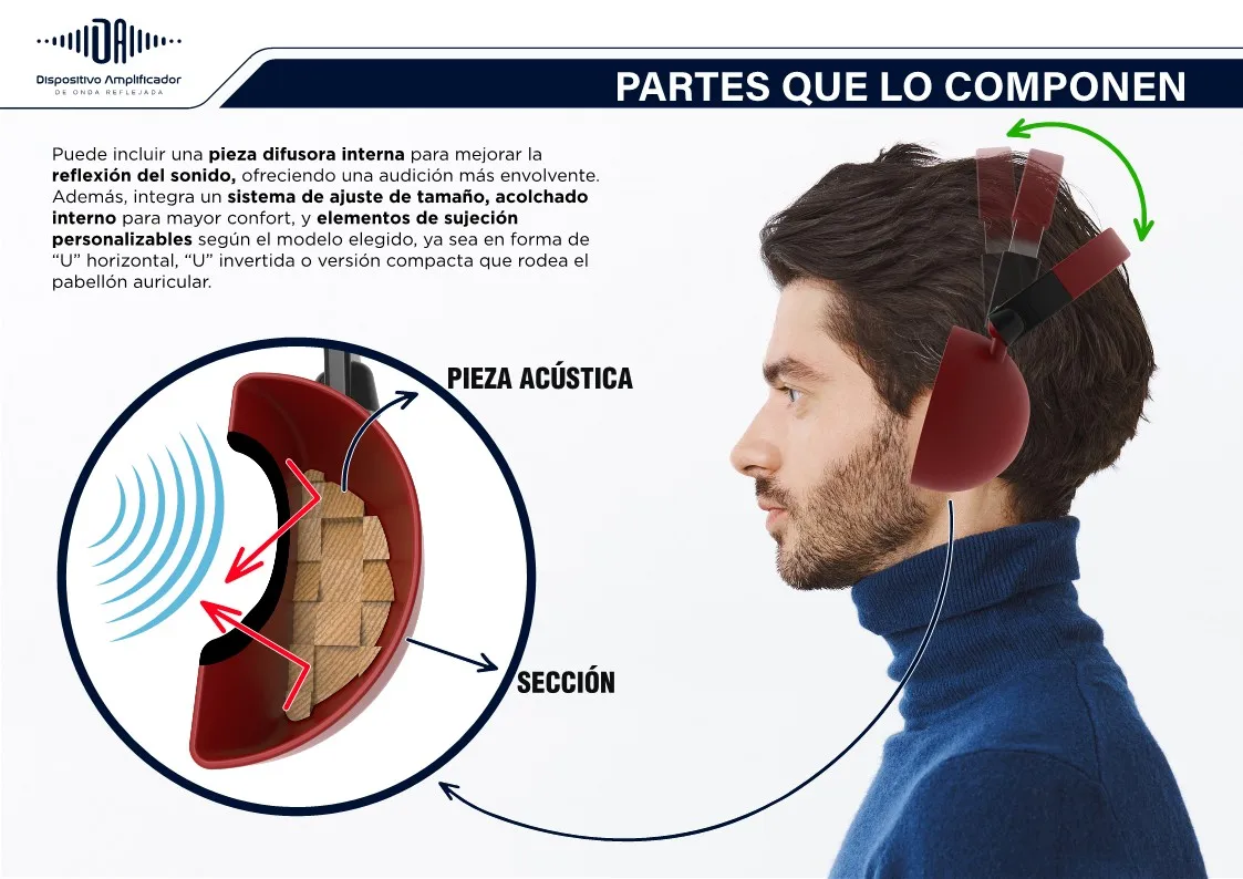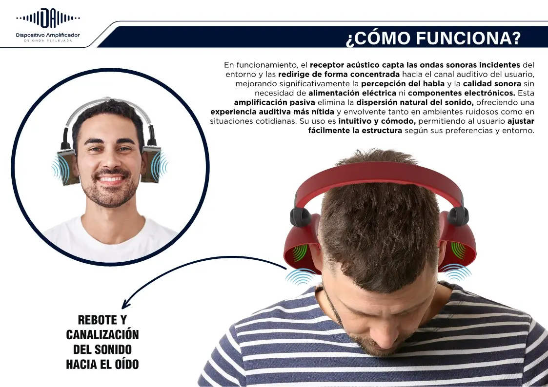 Funciona como ayuda auditiva no electrónica, sin baterías ni mantenimiento.