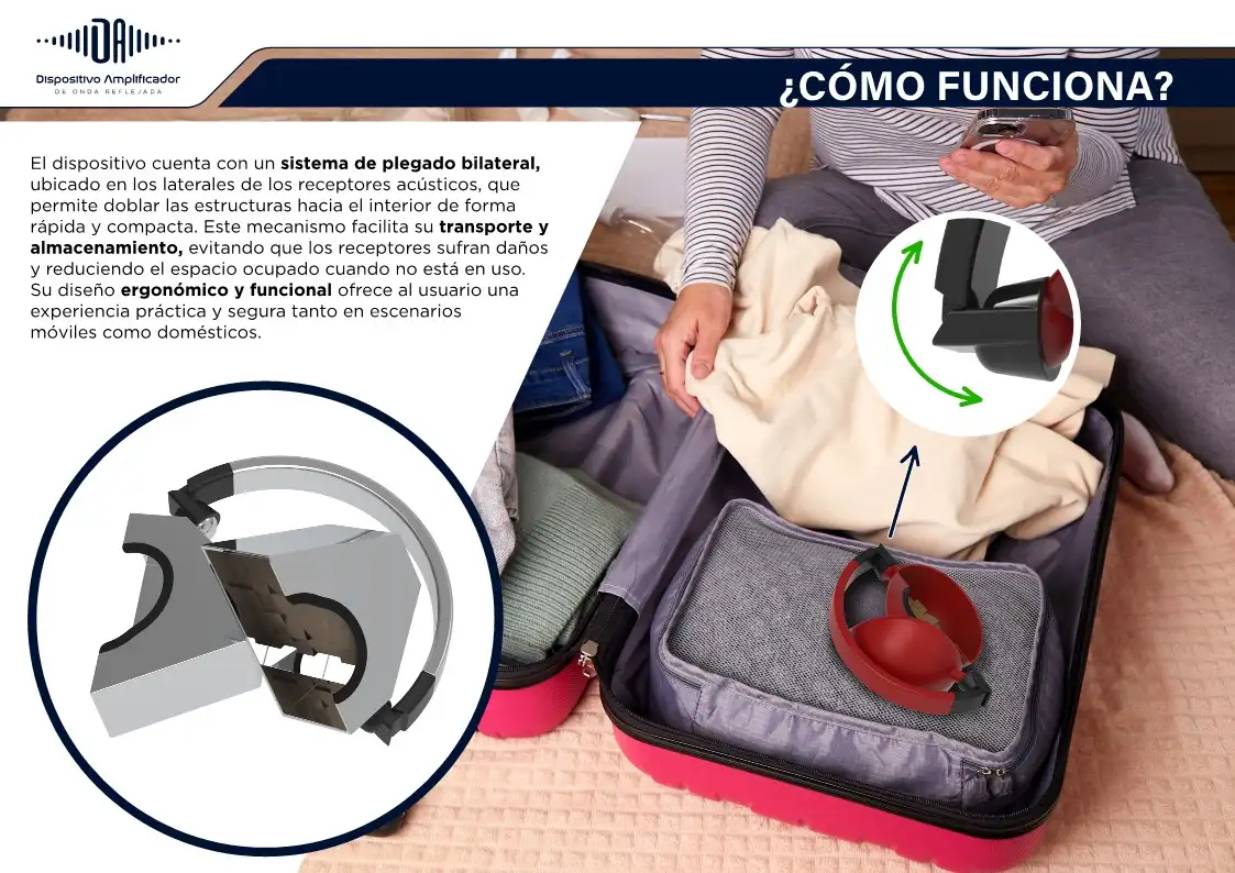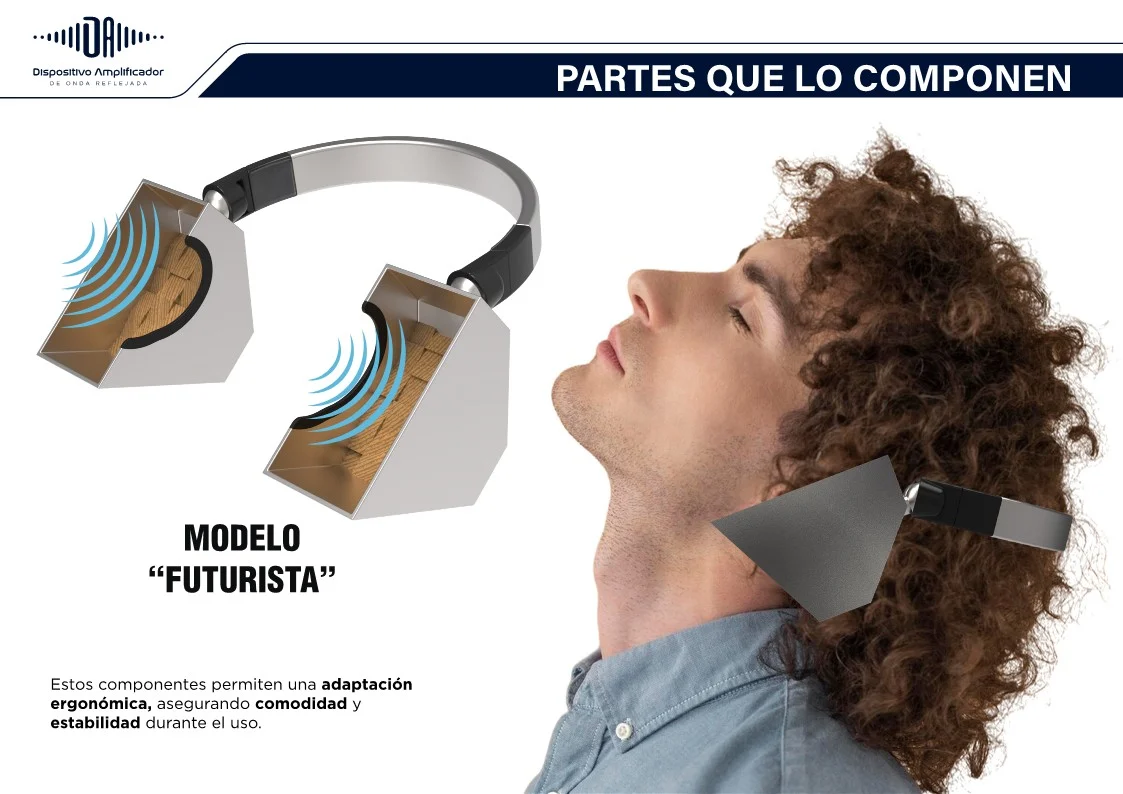 Receptor acústico para conciertos, cine y charlas como dispositivo acústico pasivo.