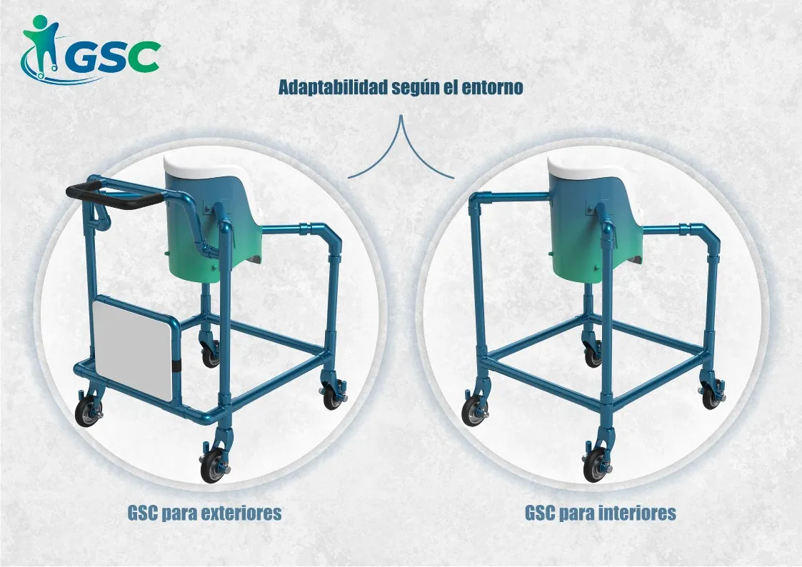 Esta pieza de tecnología asistida incorpora ruedas giratorias para un movimiento fluido en cualquier dirección. Destaca entre los dispositivos ortopédicos innovadores por su facilidad de uso en espacios reducidos y domésticos