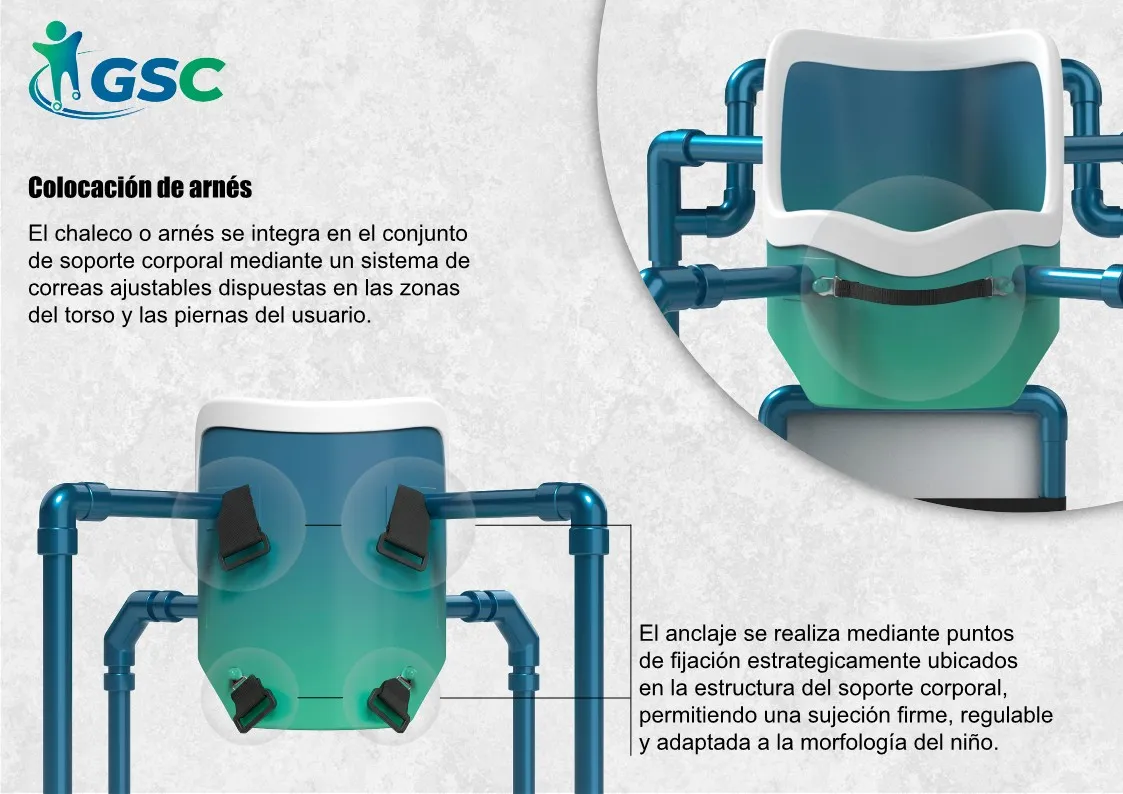 Especialmente eficaz en casos de parálisis cerebral infantil, este equipo de innovación sanitaria infantil promueve el ejercicio físico y la rehabilitación motora, facilitando la tecnología para la inclusión social