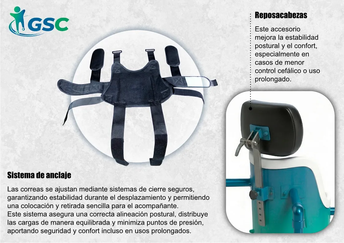 Diseñado como una ayuda técnica para niños, su asiento envolvente protege la postura y elimina puntos de presión. Es tecnología asistencial de alto nivel para un soporte pélvico seguro y confortable