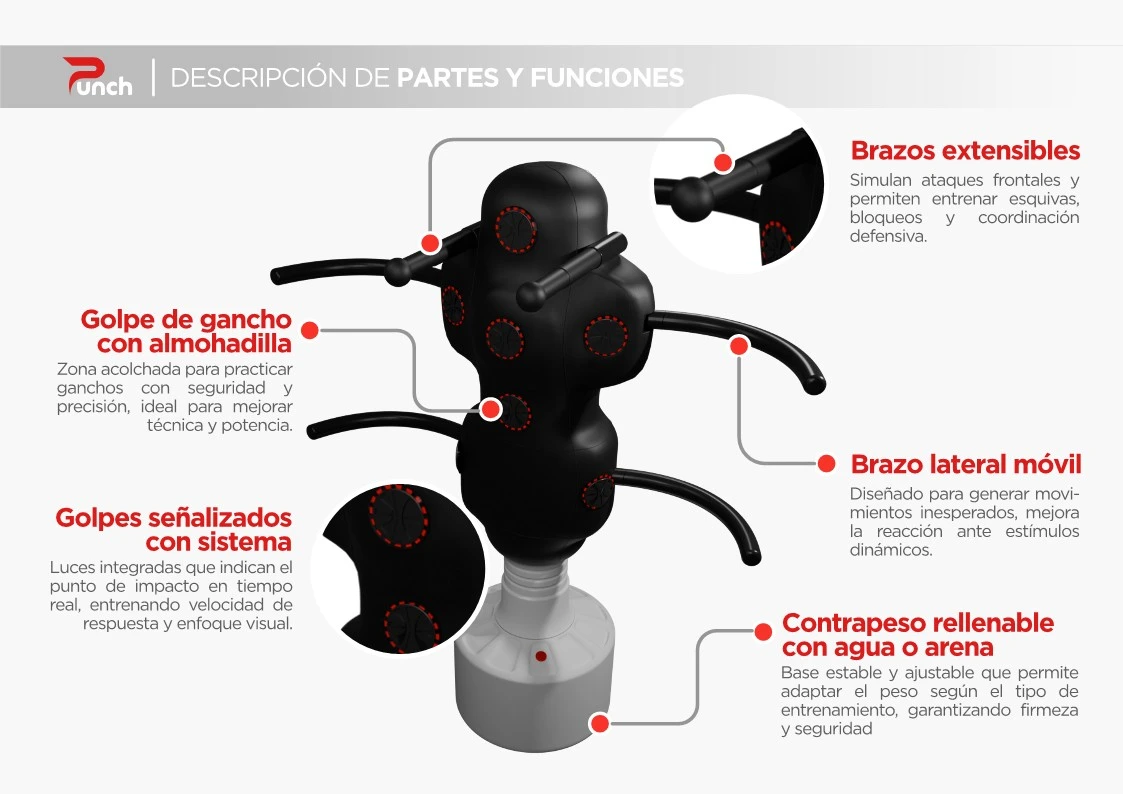 Equipo para defensa personal que imita movimientos ofensivos y defensivos, ideal para entrenar en solitario