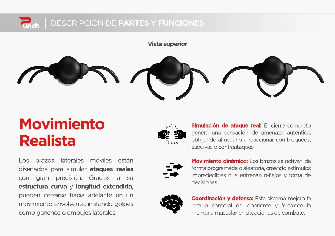 Dispositivo innovador que simula escenarios reales de lucha para mejorar fuerza y técnica en artes marciales y defensa personal