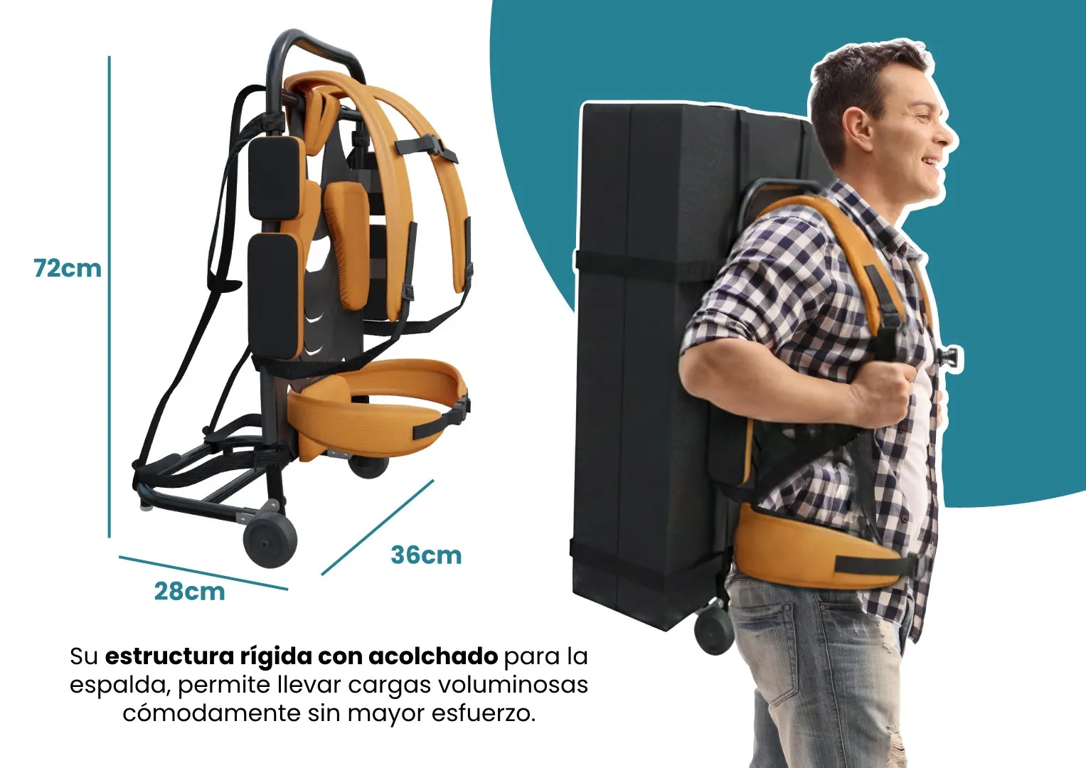 Mochila portacamillas diseñada para reducir la carga física, con ajuste lumbar y respaldo acolchado. Ideal como mochila ergonómica sanitaria para uso diario