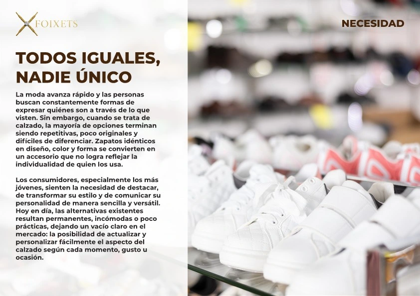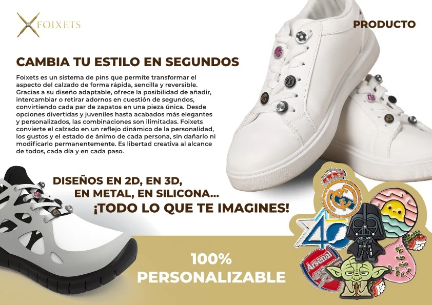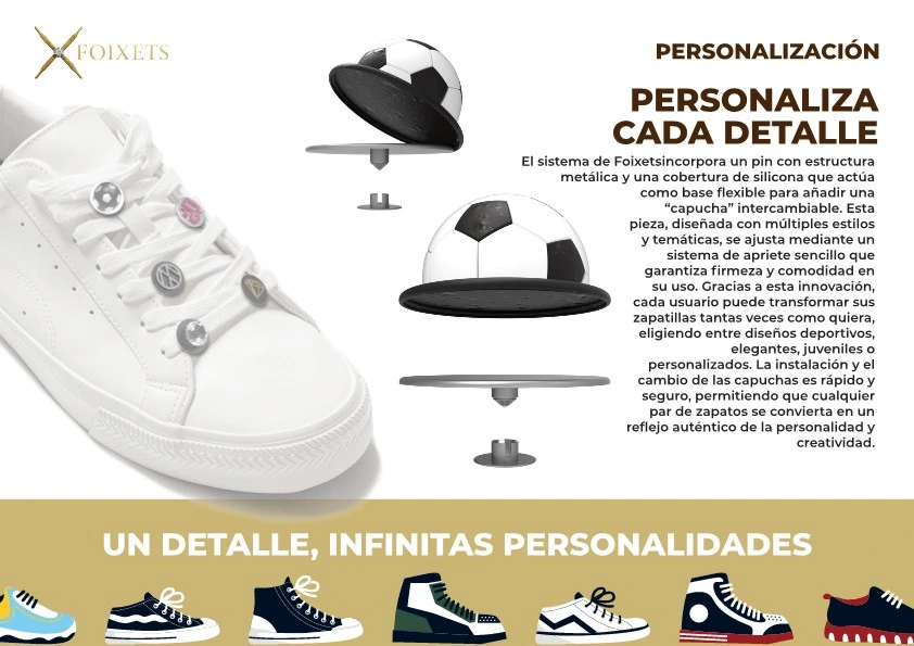 Contribuye a la innovación en calzado al actualizar la estética de los zapatos, prolongando su vida útil mediante el cambio de adornos