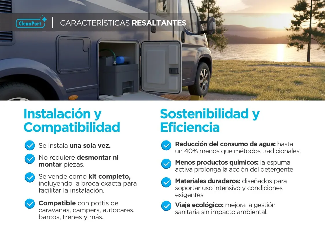 Perfecto para la limpieza de autocaravanas, caravanas e inodoros portátiles en entornos móviles