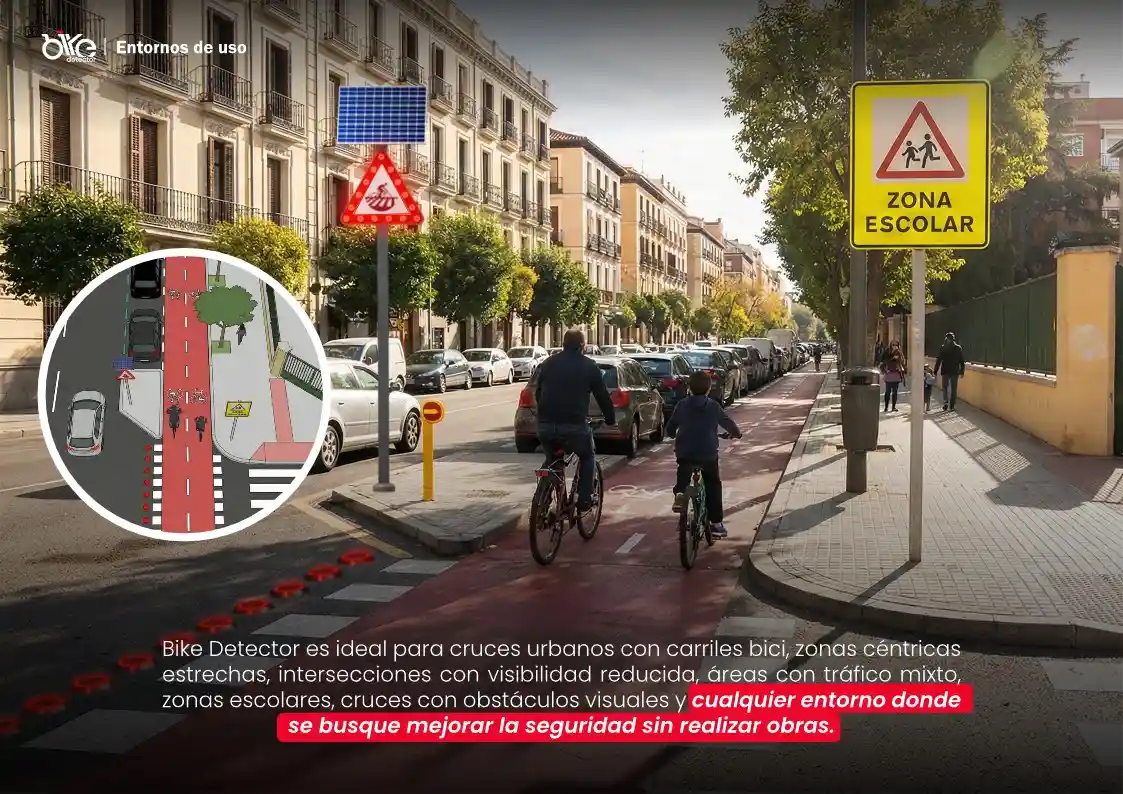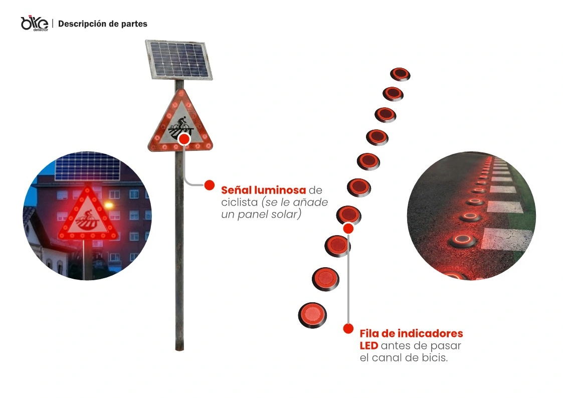 Incorpora señalización inteligente vial visible y clara, aumentando la seguridad vial inteligente en cruces y carril bici