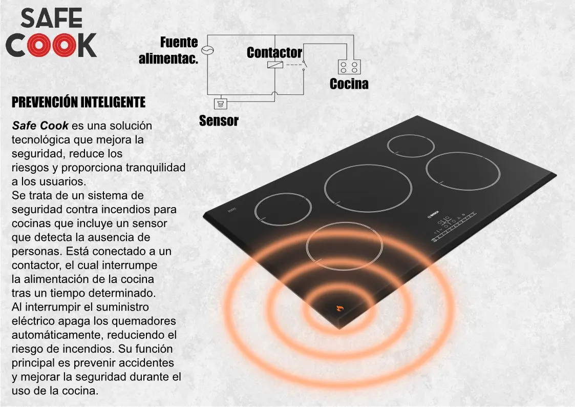 Es un avanzado sistema de seguridad para cocina diseñado para prevenir incendios mediante el monitoreo constante de la actividad humana en el área de cocción