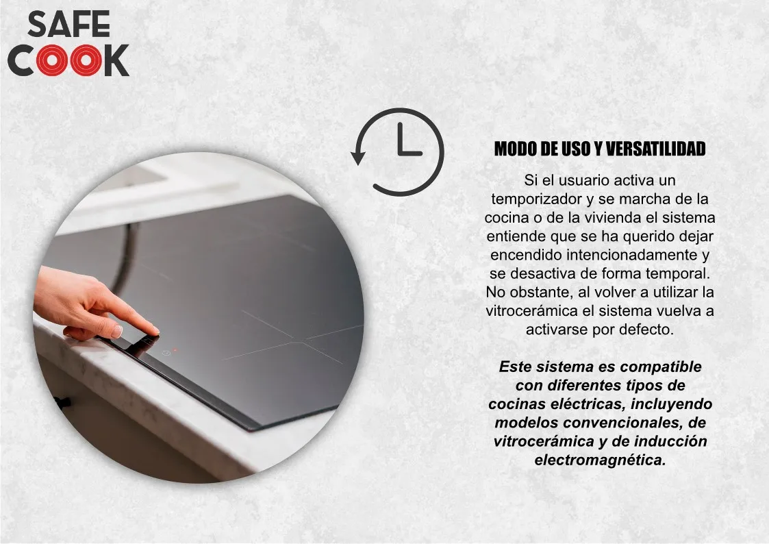 Este sistema de apagado automático cocina es compatible con modelos eléctricos, vitrocerámica e inducción.