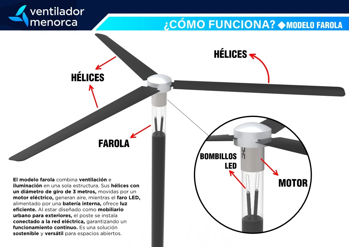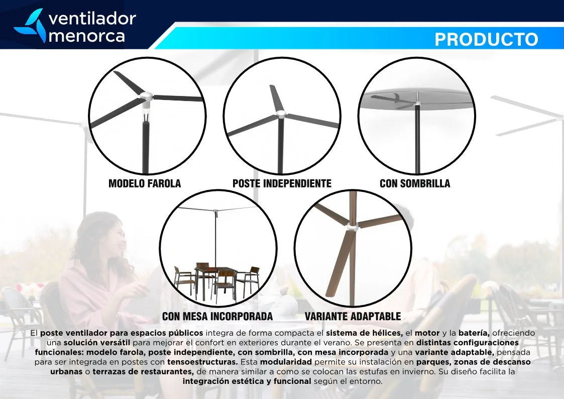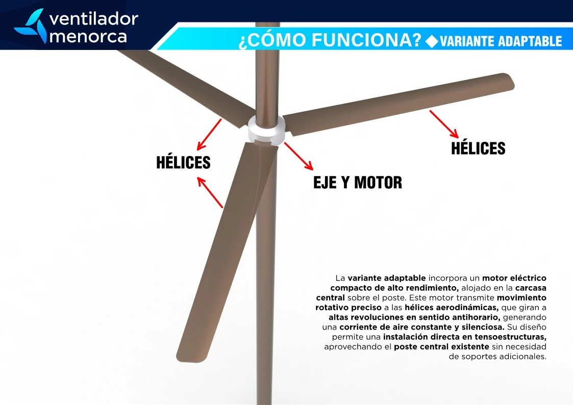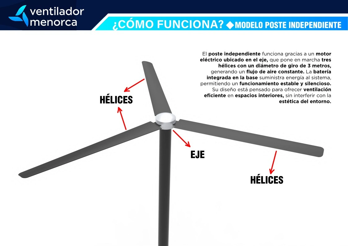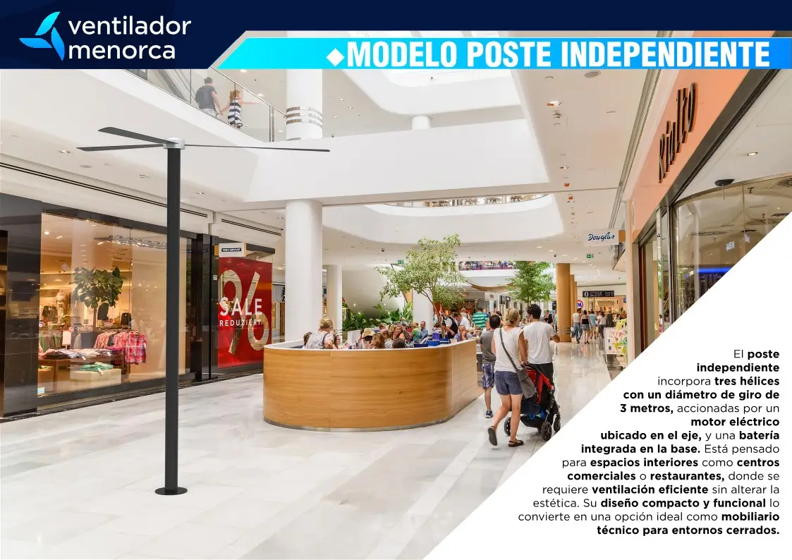 El ventilador versátil se instala fácilmente en terrazas y exteriores, adaptándose a cualquier espacio sin complicaciones